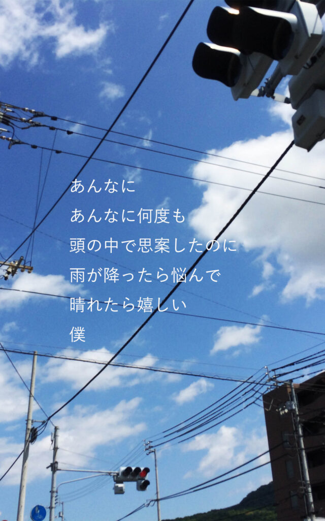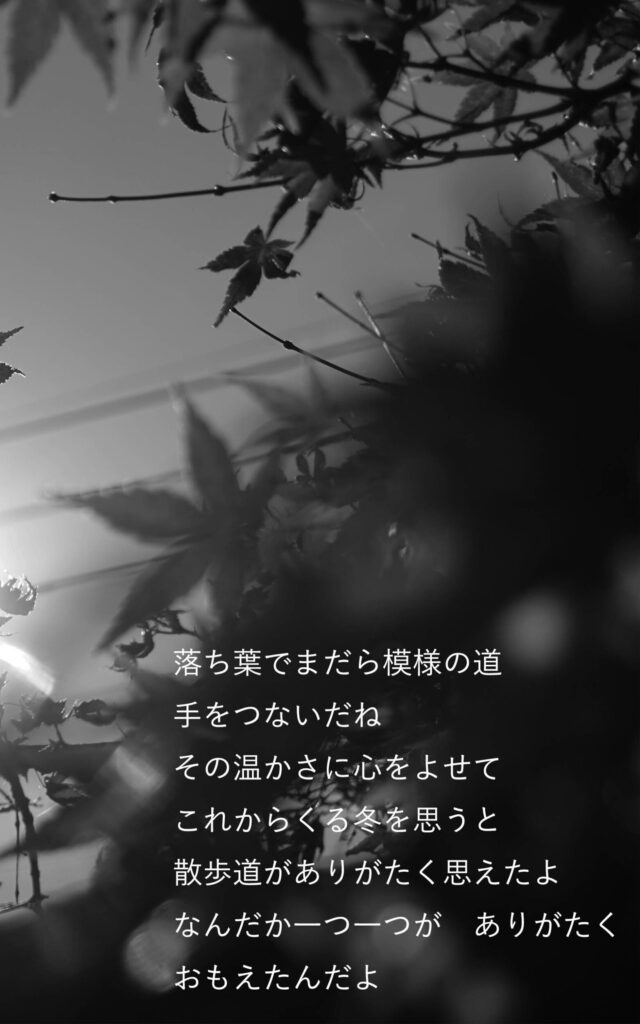 【作品集 ♯1】23歳の詩 2025 9/29 2025年9月29日 当ページのリンクには広告が含まれています。 個展へようこそ。 ゆっくり見ていってください。 詩-ポエム- 23歳の詩 よかったらシェアしてね! URLをコピーしました! 【作品集 ♯4】24歳の詩と抽象画(冬) 【作品集 ♯2】23歳の詩 著者 りゅーやん 栃木県在住の35歳。 双極性障害二型(完解済み)・同性愛者。 34年間住んでいた愛媛県から、栃木県に引っ越し、12年間続けた介助の仕事をやめて無職になる。精神安定剤代わりに始めた登山を、毎週続けているうちに、ニュージーランド1300kmのロングトレイルを歩くことができるようになった。フィリピン人の同性パートナーと一緒に生活をしながら、社会の壁を乗り越え、楽しい日々を送るため、人生をサバイバルしている。 関連記事 【作品集 ♯3】23歳の詩 2025年10月1日 【作品集 ♯3】24歳の詩と抽象画(秋) 2025年9月27日 【作品集 ♯4】24歳の詩と抽象画(冬) 2025年9月28日 【作品集】35歳の詩 2025年10月8日 【作品集 ♯1】24歳の詩と抽象画(春) 2025年9月25日 【作品集 ♯2】24歳の詩と抽象画(夏) 2025年9月26日 【作品集 ♯1】25歳の詩 2025年10月2日 【作品集 ♯3】25歳の詩 2025年10月4日 コメントが欲しくてたまりません、どうかコメントを…!! コメントする コメントをキャンセルコメント ※ 名前 メール サイト 次回のコメントで使用するためブラウザーに自分の名前、メールアドレス、サイトを保存する。