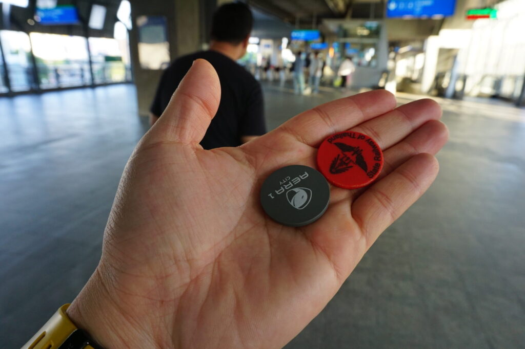 すると出てきたのは、中に電子チップが入ったプラスチック製のコインだった。