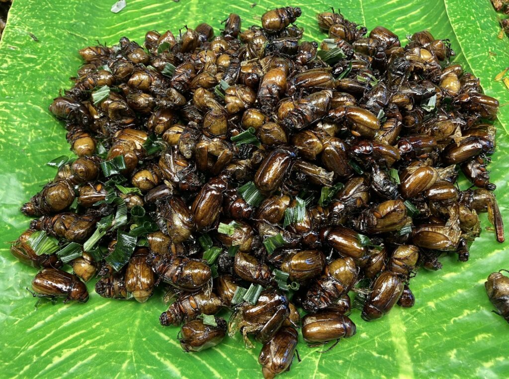 まず最初に、一番インパクトの強いカナブンのような見た目の虫から食べることにした。