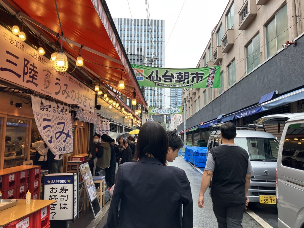 このホテルの近くには「仙台朝市」という地元のマーケットがあるということだったので、さっそくホテルに停めていた車を他のパーキング移して、歩いて行ってみる。