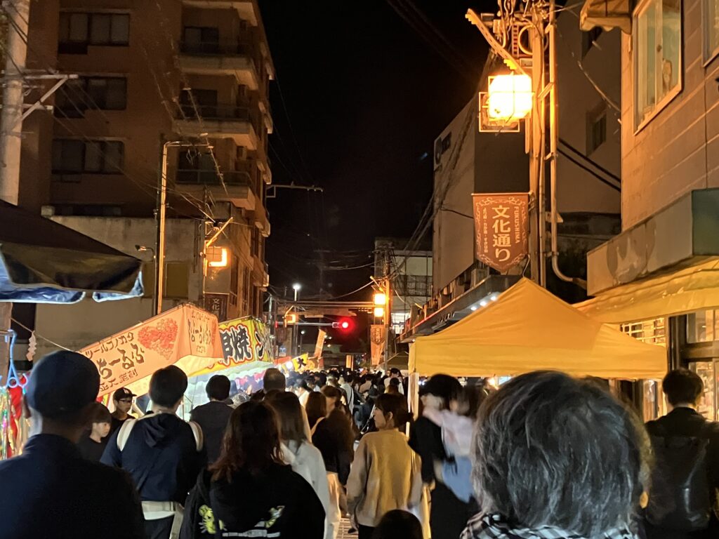 駐車場を探しながら上善寺通をウロウロしていると、大きな音楽が聞こえてきた。ソーマと振り返ると、たくさんの人が音楽に合わせて踊っている。